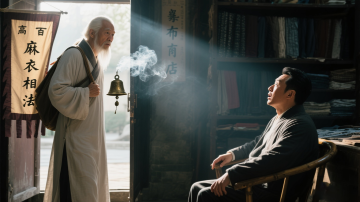 这日午后,他正坐在柜台后唉声叹气,忽听门口传来一阵铜铃声,抬头见是个背着布幡的外地道士,布幡上写着 “麻衣相法” 四个大字。