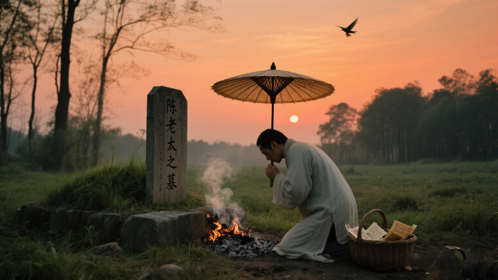 当天傍晚,高百万按照道士说的地址,找到了陈老太的坟茔。他恭恭敬敬地将那把油纸伞摆在坟前,烧了纸钱,又磕了三个响头,把当年的疏忽和愧疚说了个明白。